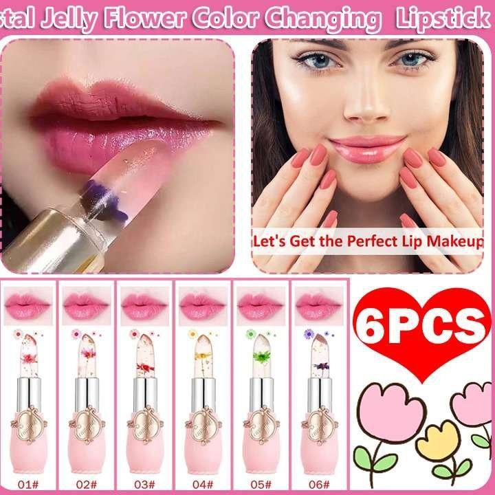 ❤【Package including】6 pieces of flower jelly lipstick set in 6 colours ( Green flower, Purple flower).
