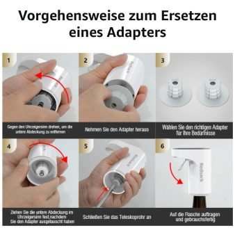 The wine dispenser is suitable for different bottle openings with three different sized adapter silicone stoppers. The diameter of silicone stoppers is 18mm-20mm, 20mm-23mm (other caliber bottle mouths are not suitable). Retractable straw to fit 165mm-385mm glass height; can serve sake, whiskey pump, shochu, fruit wine, rice wine, spirits and wine.